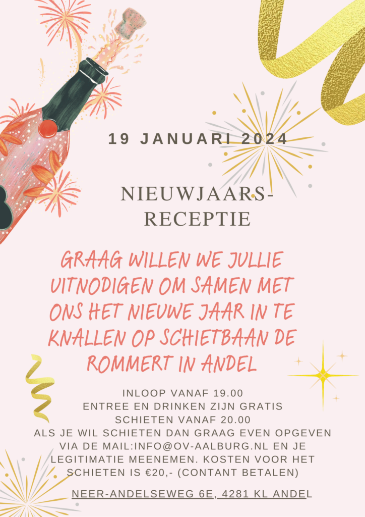 Graag willen we jullie uitnodigen om samen met ons het nieuwe jaar in te knallen op schietbaan De Rommert in Andel